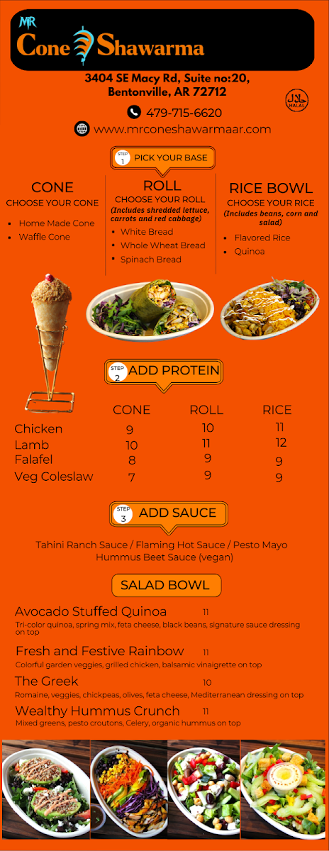 Mr.cone Shawarma - Bentonville Menu brings a fun mix of bold flavors to this quiet corner of Bentonville, and it’s the kind of spot you notice the moment those warm, savory aromas hit you. Tucked over on 3404 SE Macy Rd #20, it offers a lineup that feels familiar but still manages to surprise you. The shawarma cones are the star-juicy, wrapped just right, and packed with seasonings that make each bite a little addictive.